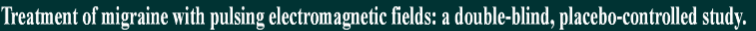 The effect of exposure to pulsing electromagnetic fields on migraine activity was evaluated by having 42 subjects (34 women and 8 men), who met the International Headache Society's criteria for migraine, participate in a double-blind, placebo-controlled study. During the first month of follow-up, 73% of those receiving actual exposure, reported decreased headaches (45% substantial decrease, 14% excellent decrease) compared to half of those receiving the placebo (15% worse, 20% good, 0% excellent). Ten of the 22 subjects who had actual exposure received 2 additional weeks of actual exposure, after their initial 1-month follow-up. All showed decreased headache activity (50% substantial, 38% excellent). Eight of the subjects in the placebo group elected to receive 2 weeks of actual exposure after the initial 1-month follow-up with 75% showing decreased headache activity (38% substantial, 38% excellent). In conclusion, exposure to pulsing electromagnetic fields for at least 3 weeks is an effective, short-term intervention for migraine.Sherman R. et.al. Orthopedic Surgery Service, Madigan Army Medical Center, Tacoma, WA, USA.
